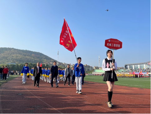 旗帜的引领下,学院党政领导带领师生步伐整齐地走过主席团,手持拉拉队花的学生们朝气蓬勃,昂首向前,展现了竞彩足球