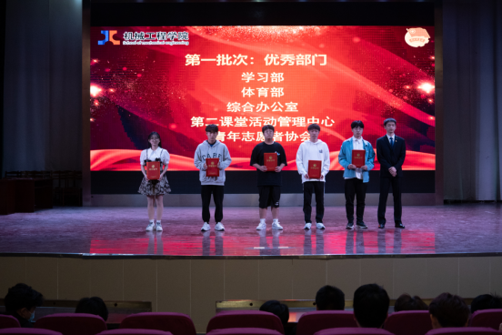 团委学生会工作先进集体和先进个人的通报》;第五项是依次颁发院优秀部门、优秀副部长、优秀干事、优秀团干、优秀团员等奖项;第六项是院团委书记费白露总结发言,她对学院团委学生会过去一年为学院团学工作作出的成绩表示感谢,希望受表彰的先进集体和个人认真总结经验,充分发挥模范带头作用,一要严格要求自己,不断完善自己,二要培养创新思维,形成工作特色,三要立足工科特点,力求全面发展,以实际行动展现出共青团组织及广大团员良好的精神风貌,不断开创学院团学工作的新局面,努力为学院发展贡献力量。(撰稿:费白露 审核:李克明)