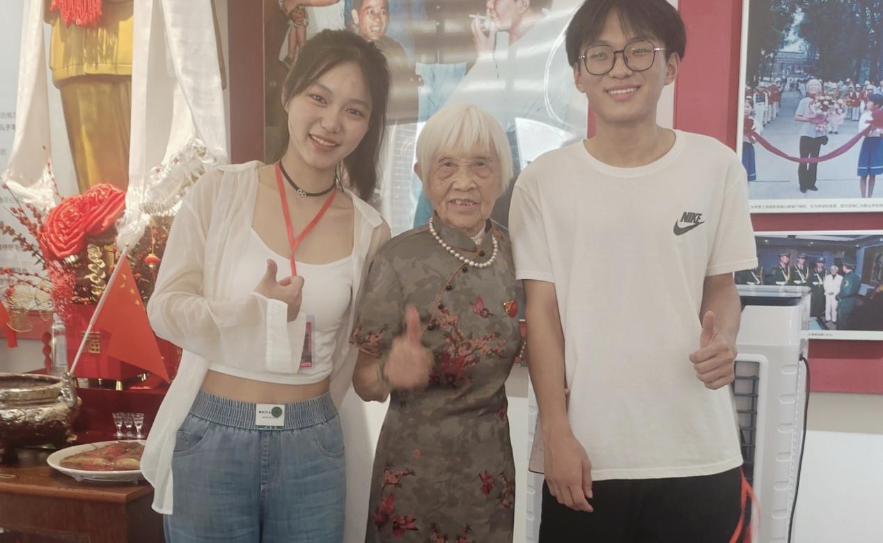 在村党委书记的介绍下,实践队顺利联系并采访了毛家饭店董事长汤瑞仁奶奶。这位敢拼敢干,不怕牺牲的94岁高龄实干企业家,始终奉行活到老学到老,没读过书却在80多岁学习了写字并且资助了4000多小孩上学,年过九旬,身上十多处骨折镶嵌了铁板还创办了老年基金会和残疾人基金会。“身残志不残,人残心不残”在她身上体现的淋漓尽致。