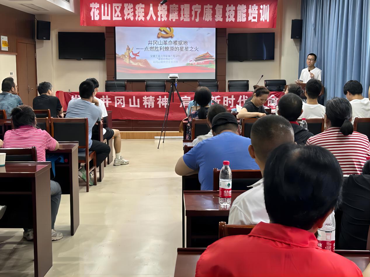 为深入学习贯彻习近平新时代中国特色社会主义思想和党的二十大精神,落实“强国复兴有我”群众性主题宣讲教育活动,6月25日至7月5日,竞彩足球 “重拾红色记忆”井冈山精神党员宣讲团,精心策划、认真组织,在马鞍山市花山区、雨山区、当涂县等地开展了十余场井冈山精神主题宣讲活动。