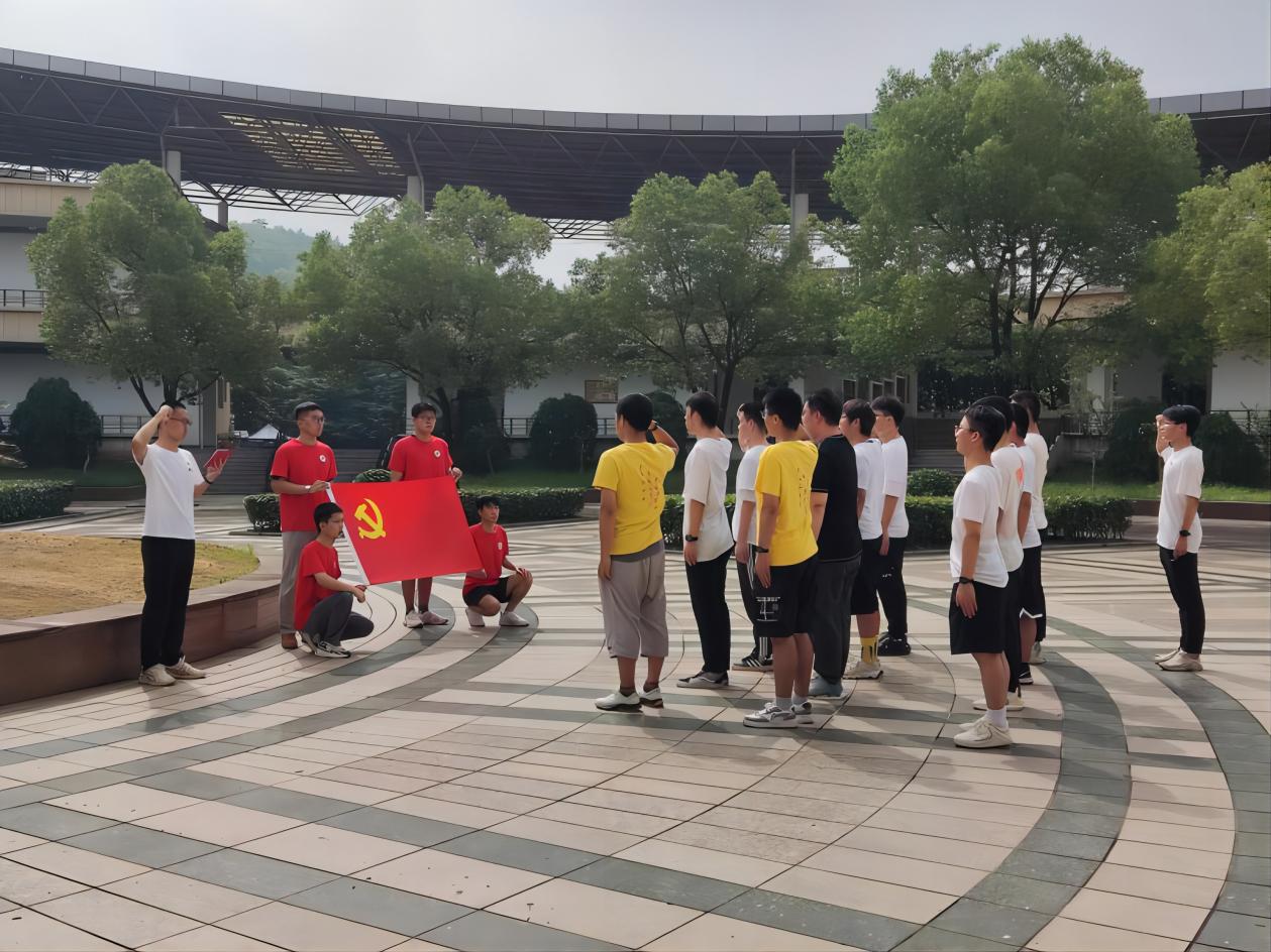 除宣讲外“重拾红色记忆”井冈山精神党员宣讲团还开展了丰富多样的实践活动。在建党节,宣讲团开展“七一”升国旗及党旗下重温入党誓词活动。在雄壮的国歌中,鲜艳的五星红旗冉冉升起,全体青年党员凝神肃立,仰望国旗行注目礼。升旗仪式结束后,在领誓人的带领下,全体青年党员举起右臂,面对党旗庄严宣誓:“我志愿加入中国共产党,拥护党的纲领......”铿锵有力的誓言体现了党员的昂扬斗志和不忘初心精神。