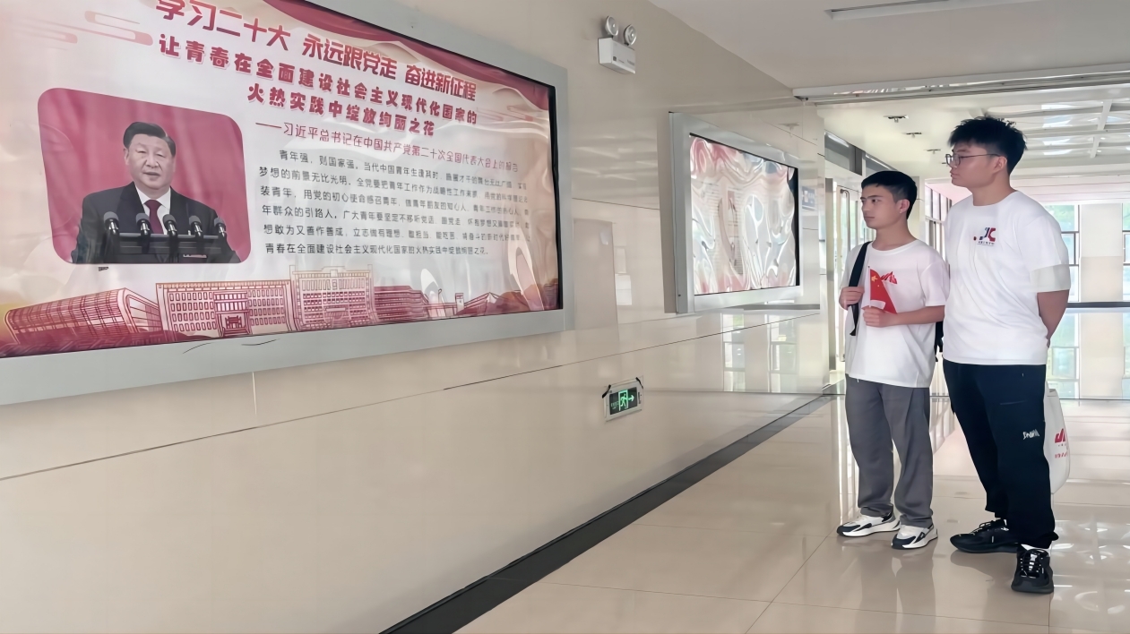 图为实践队员在学习党的二十大精神