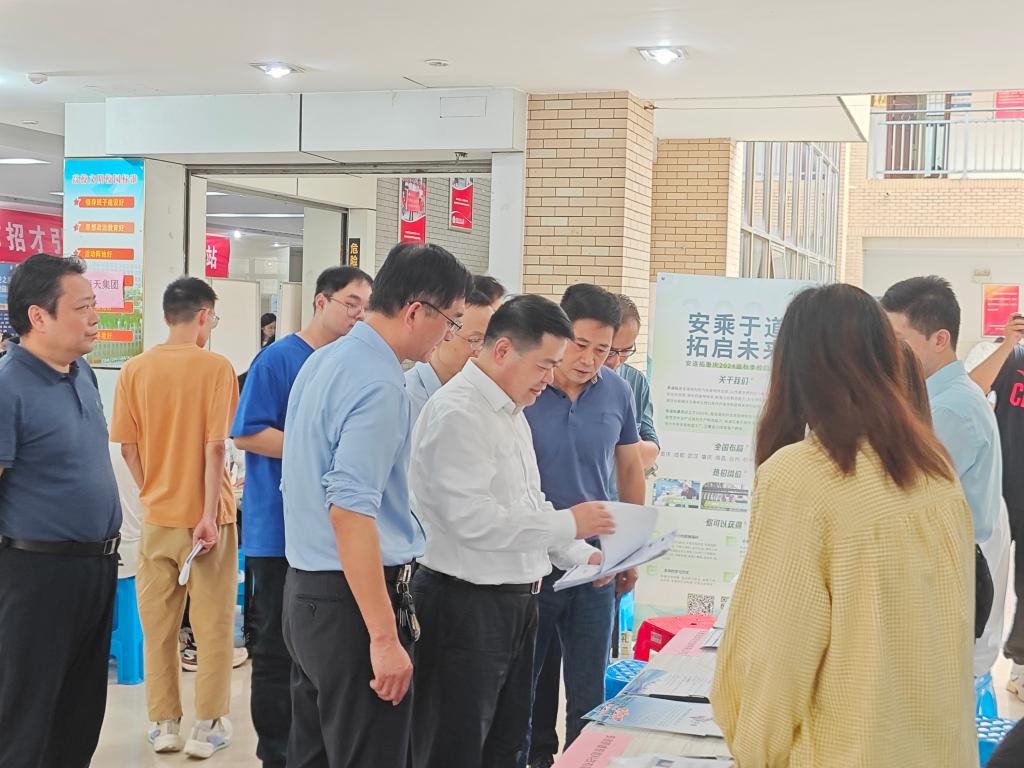 大学生就业工作高质量发展。招聘会上,陆林与企业招聘人员广泛交流,了解企业发展情况、招聘需求以及现场大学生应聘情况。陆林鼓励应届毕业生要结合专业特点和职业规划主动与用人单位沟通,积极求职,高质量就业,并对学院组织宣传工作给予肯定,对招聘效果给予高度认可。
