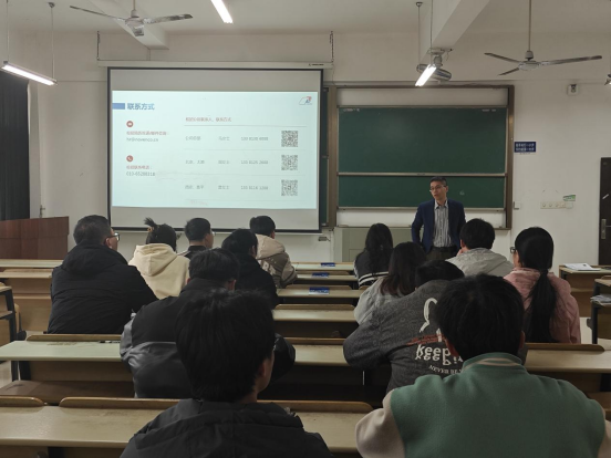 开展校招宣讲。诺文科风机(北京)有限公司CEO李峰、项目经理胡刚、董事长助理杨小泽、人事专员雷佳到场参加,宣讲会由李峰主讲。