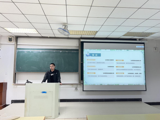 在东教南302教室举办了一场针对2022级学生的考研经验分享会,分享会由22级辅导员濮莹萍主持,邀请2024届考研优秀代表吴义国同学开展经验分享。