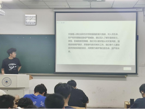 活动讲解了地震、洪水、泥石流、山体滑坡、台风、雷电、沙尘暴、火灾八个常见自然灾害发生前征兆、灾害来临时采取的应对措施及现场自救互救等安全知识,希望同学能够做到应知应会、入脑入心。同时,着重强调校园消防安全问题,针对不同场景、不同燃烧物的特点,通过事例介绍了不同类型火灾发生的原因及火灾预防、消防的基本知识,严禁在宿舍使用违规电器、乱扔烟头、私拉乱接电线等,通过常态化排查安全隐患、学习消防安全知识、增强消防安全意识,扎实推动平安校园建设。