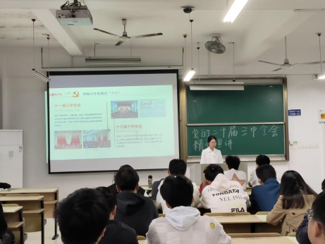 本次党的二十届三中全会精神宣讲用“青言青语”让“党言党语”“声”入人心,既有理论高度,又结合院系实际,深入浅出、通俗易懂。同学们都表示要切实学习好贯彻好党的二十届三中全会精神,增强学习贯彻全会精神的责任感和使命感,深刻领会和把握进一步全面深化改革的主题,将思想和行动统一到党中央决策部署上来,把理论成果转化为实践动力,以实际行动为推进中国式现代化贡献力量。(撰稿:彭勇刚  审核:濮莹萍 周环 陈庆林)