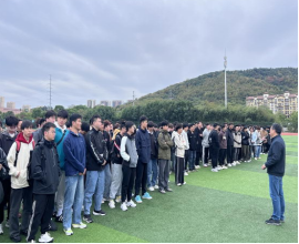 在秀山校区田径场举办班级学生干部素质能力培训团建活动,活动由学院党委副书记陈庆林主持,2022级、2023级全体辅导员、班委成员和团支部委员参加。