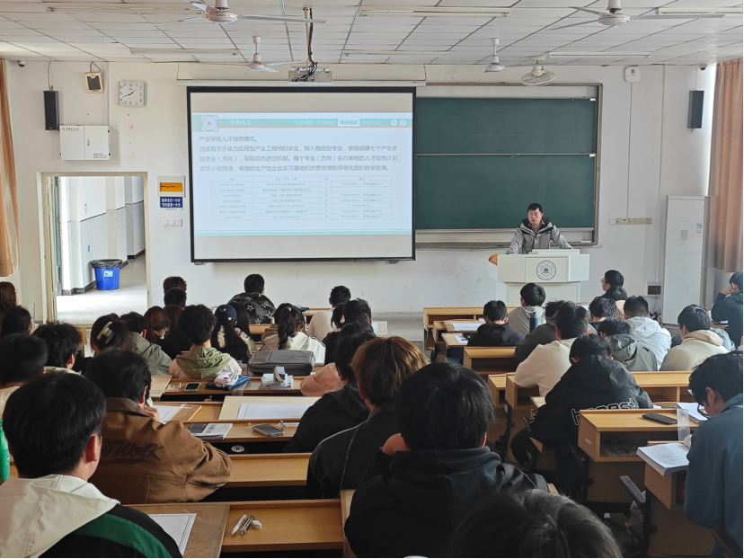 机器人工程专业在教一101室召开专业分方向动员会。机器人工程系副主任袁晖老师主讲,2024级新生辅导员陈洁、汪辉及专业全体学生参加动员会。