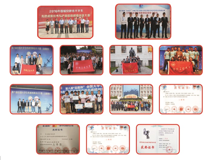 近年来,获得了2014年、2015国际遗传基因机械设计大赛(iGEM)银奖、第十四届“挑战杯”全国大学生课外学术科技作品竞赛决赛获二等奖一项、三等奖一项、第八届“高教杯”全国大学生先进成图技术与产品信息建模创新大赛一等奖、机械类团体二等奖;2014年在安徽省“创青春”创业计划竞赛中获得银奖、第三届全国“TRIZ”杯大学生创新方法大赛二等奖、第七届全国大学生机械创新设计大赛中一等奖、第六届“浩辰杯”华东区大学生CAD应用技能竞赛一等奖、中国机器人大赛暨RoboCup公开赛安徽省赛一等奖、第二届全球创客(马鞍山)大赛暨创客中国国际大赛(主题赛)二等奖等。2016年成功承办了首届安徽省大学生先进图形术与产品信息建模创新大赛。通过科技竞赛活动,学生的科技创新能力得到了加强和提高,为营造良好的院风、学风起到了积极地推动作用。学院毕业生因基础扎实、能力突出深受用人单位欢迎,就业率一直名列学校前茅。