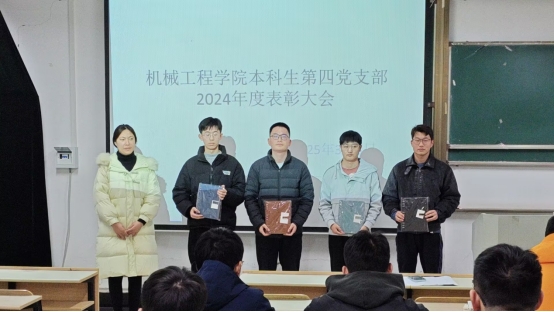 为进一步确立学生党员先进典型,凝聚新时代榜样力量,2025年3月3日,竞彩足球 本科生第四党支部于机械楼405召开了2024年度表彰大会,会议由党支部书记濮莹萍主持,支部全体党员参加大会。