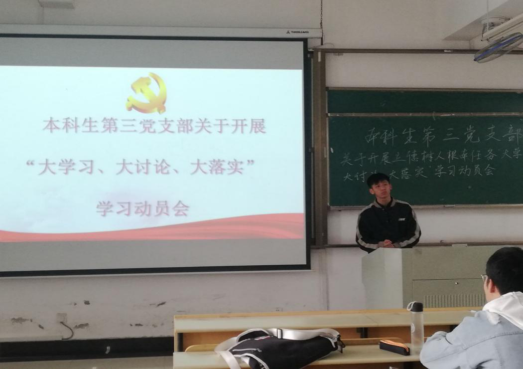 本科生第三党支部在机械楼405召开“大学习、大讨论、大落实”学习动员会。支部全体成员出席会议。