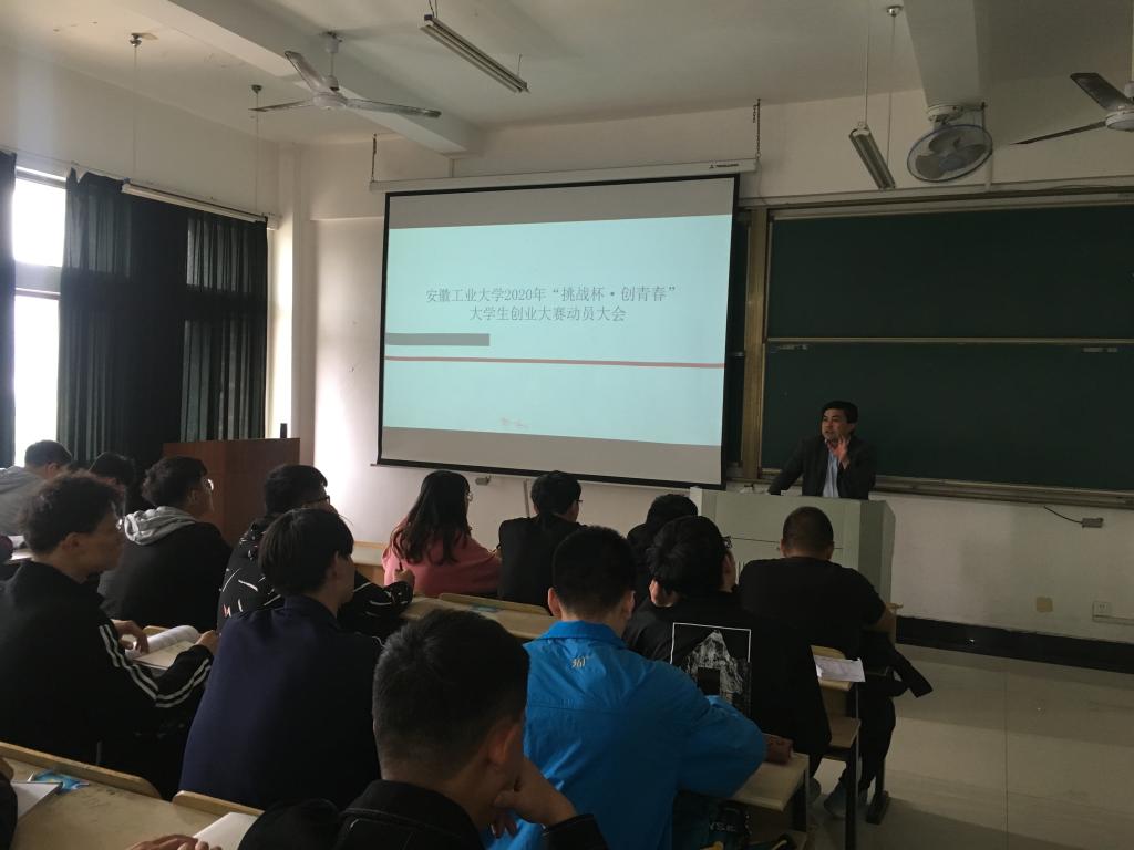 2020年“挑战杯·创青春”大学生创业大赛在机械楼407举行。学院党委副书记李克明出席会议,学院学工办全体辅导员老师及各年级学生代表参加了会议。