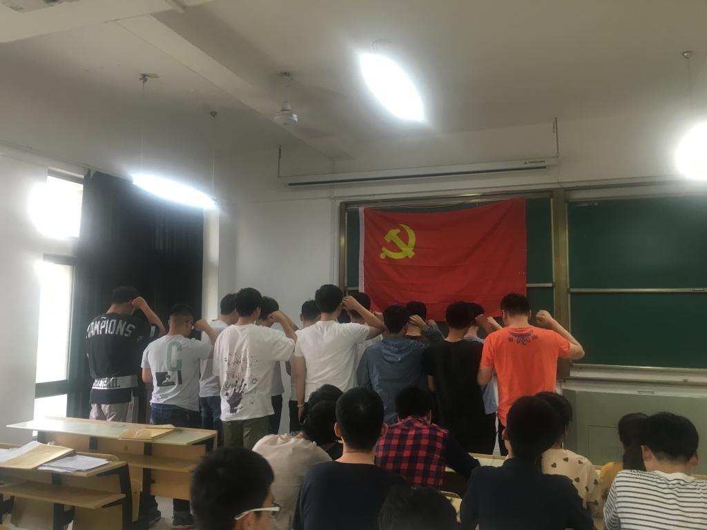 最后,全体党员起立对着党旗宣读入党誓词,支部书记章军老师对此次支部大会进行了总结,表示此次支部大会不仅壮大了支部党员队伍,也给党组织注入了新鲜血液。希望大家加入党组织后能够不忘初心,牢记使命,继续加强理论学习,在生活中发挥自身的优良品质,发挥党员的先锋模范作用。 (撰稿:章军 审核:李克明)