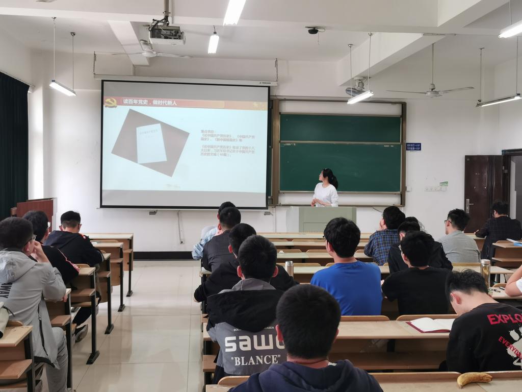 于秀山校区机械楼407教室读百年党史,做时代青年”主题读书活动,由院团委书记费白露领读分享《论中国共产党历史》第二篇文章《正确认识改革开放前和改革开放后两个历史时期》。