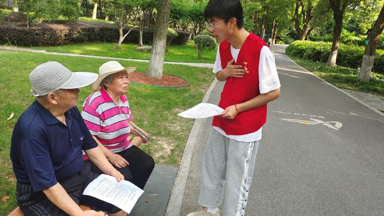实践队员向社区附近户外商贩、门卫的户外工作者及聚集在一起下棋娱乐的老年人宣传了高温防中暑知识,提醒高温天气应减少户外活动、注意补充水分,如因工作原因,不得不室外工作,一定要及时关注自己呼吸、心脏状况,如呼吸急促困难,应及时向拨打急救电话,或向临近商家求助,坚持安全第一。(撰稿:费白露 审核:李克明)