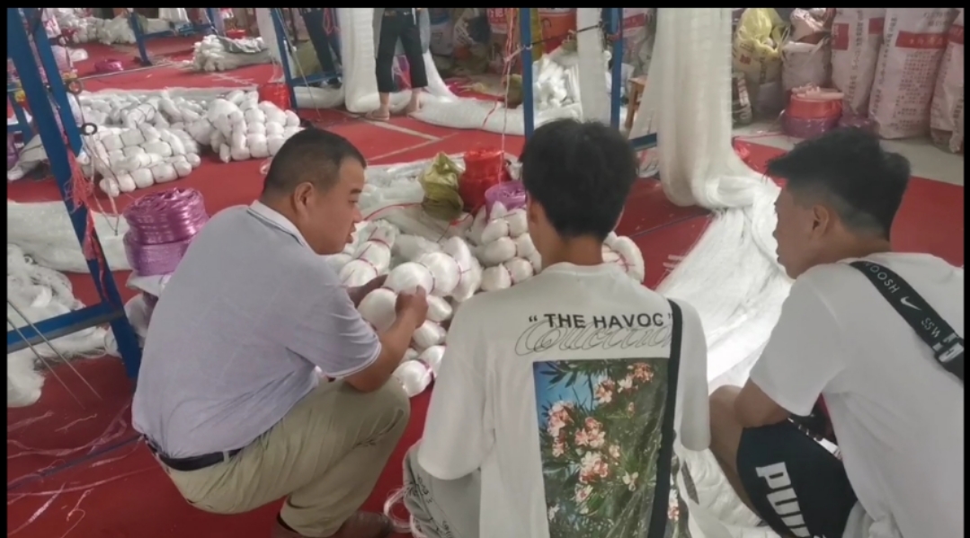 7月20日,竞彩足球 “乡村振兴背景下小镇特色产业发展调研”社会实践调研队在安徽省巢湖市槐林镇对当地的渔网产业进行调研学习。