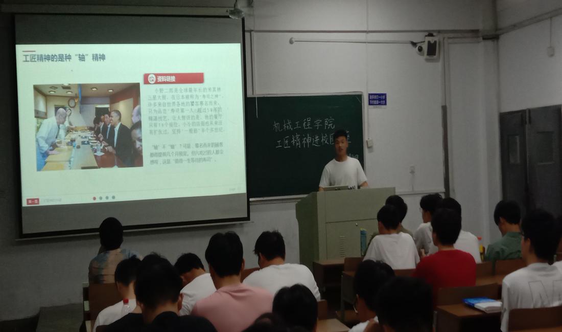 于佳山校区举办了一场工匠精神进校园讲座,讲座由院团委学生会权益部部长张冲主讲。