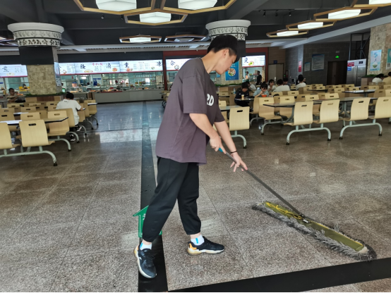 机械学子利用课余时间,带上清洁工具,走进食堂、操场、楼梯间等公共场所,不管是清扫、拖地,还是擦扶手、拾捡垃圾,同学们都十分卖力地劳作着,他们充满活力的身影与初夏的校园构成了一道道亮丽的风景线。