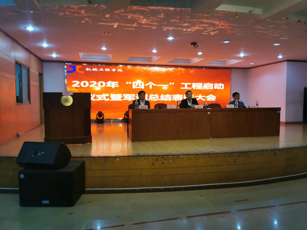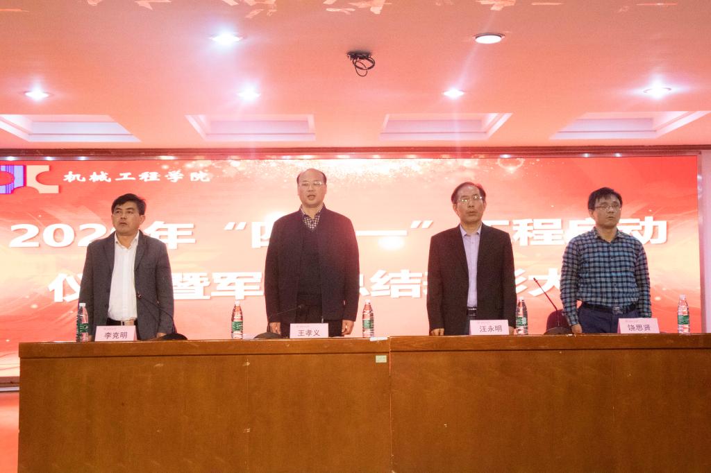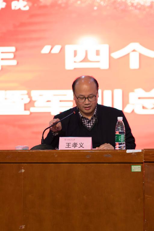 大一阶段学生培养“四个一”工程实施方案》,介绍了学院“四个一”工程的指导思想、工作思路、建设目标与重点工作等;新生代表车辆工程203班华容同学也分享了自己的军训感想和对“四个一”工程的理解与认知。之后,王孝义做了总结发言,对同学们在军训中为学院夺得“军训优秀单位”的称号和军训汇报成果《高校军训1200名新生列方阵表白祖国》被中国日报、新华社等多家媒体报道的优秀成绩提出表扬,并对受到嘉奖表彰的先进集体和先进个人表示祝贺。同时王孝义希望同学们在今后的大学生活中以顽强拼搏、力争上游的激情迎接新挑战、新考验。大学是锤炼品德、苦练本领、增长才干的人生黄金时期。当今社会对青年人的思想道德素质、专业素质、文化素质、身心素质等方面都提出了更高的期望和要求。王孝义还指出了“四个一工程”的初心和意义:提高工科学生的身体素质、语言表达能力、写作能力、专业能力等,这些能力和素质是用人单位对人才的基本要求,是大家将来在竞争日益激烈的社会中迎接挑战和机遇的必备基础,是大家未来驾驭人生、改变生活、追求事业成功的无价之宝。最后,王孝义以自己大学时期的16字要求寄语同学们,要“以学为主,兼学别样、脚踏实地,边走边唱”。会议在嘹亮的校歌声中结束。