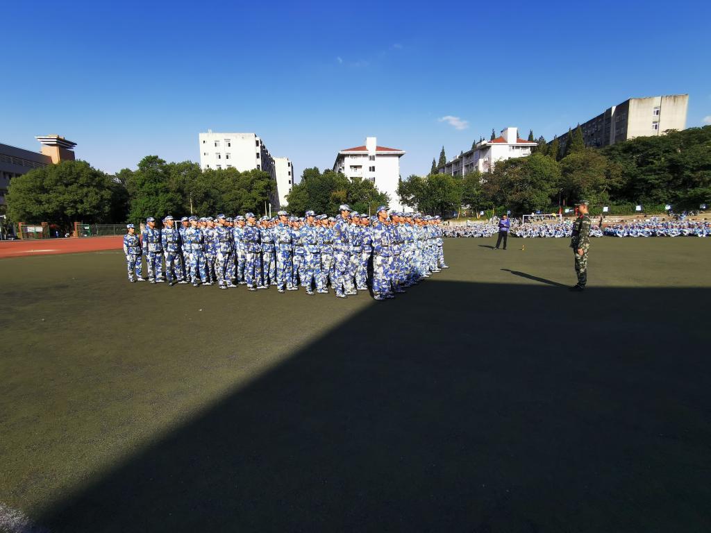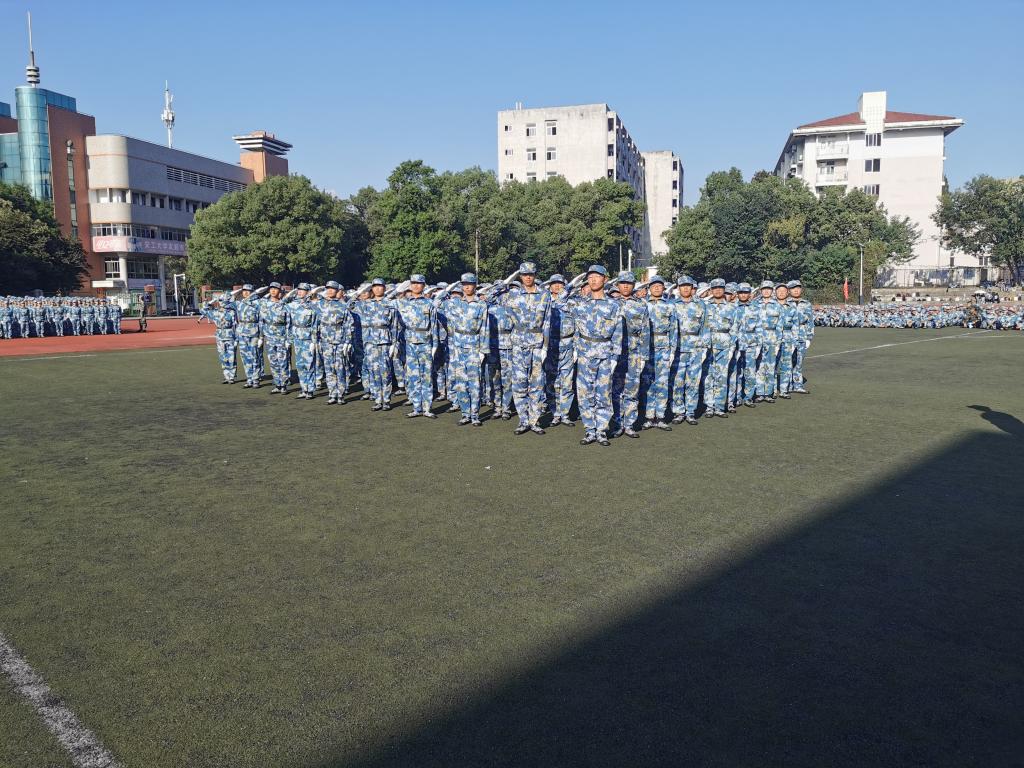 10月7日,竞彩足球 组织2020级新生代表于佳山校区操场参加了军训队列会操。