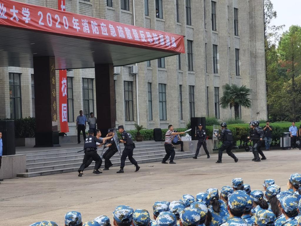 组织2020级新生于佳山校区教一前广场参加了应急疏散演练,演练由校保卫处组织开展。