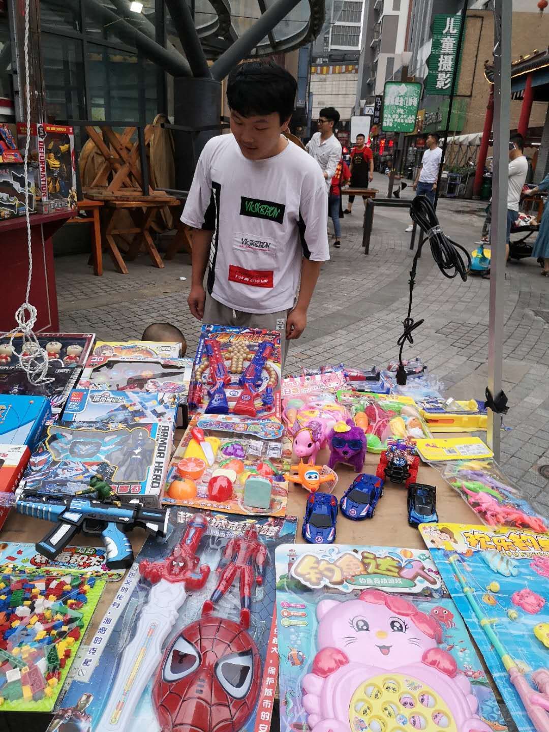 2019级管俊松、汪潮、冯艳琴、潘森林、杜志军、张志勇等同学主动加入大军,支起了自己的小摊。他们有些是为了帮助父母减轻负担,主动卖起家里的卤菜、干货。有的则在路边做起了出售玩具、图书的生意,还有些摊位为小朋友们提供了绘图、设计、美术练习的机会。