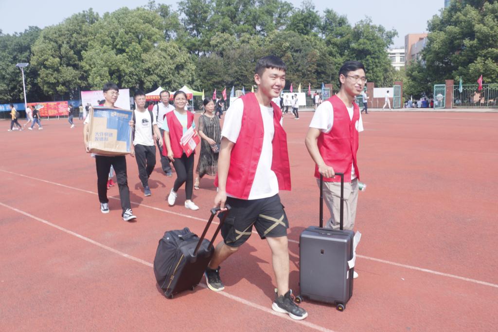 凌晨5:30,学院迎新队伍便在佳山校区田径场一切准备就绪,静候新生和家长的到来。报到现场,人头攒动,接待人员与报到新生“一对一”精准对接,报到全流程无缝式衔接,有条不紊,高效便捷。引导讲解、维持秩序、搬运行李、宿舍入住……志愿者们顶着秋后的烈日一路同行,跑上跑下,忙前忙后,乐此不疲。学院党政领导、2019级辅导员起早贪黑在迎新现场坚守岗位,关注迎新秩序,热切问候新生与家长,嘱咐注意事项,勉励新生珍惜大学光阴。