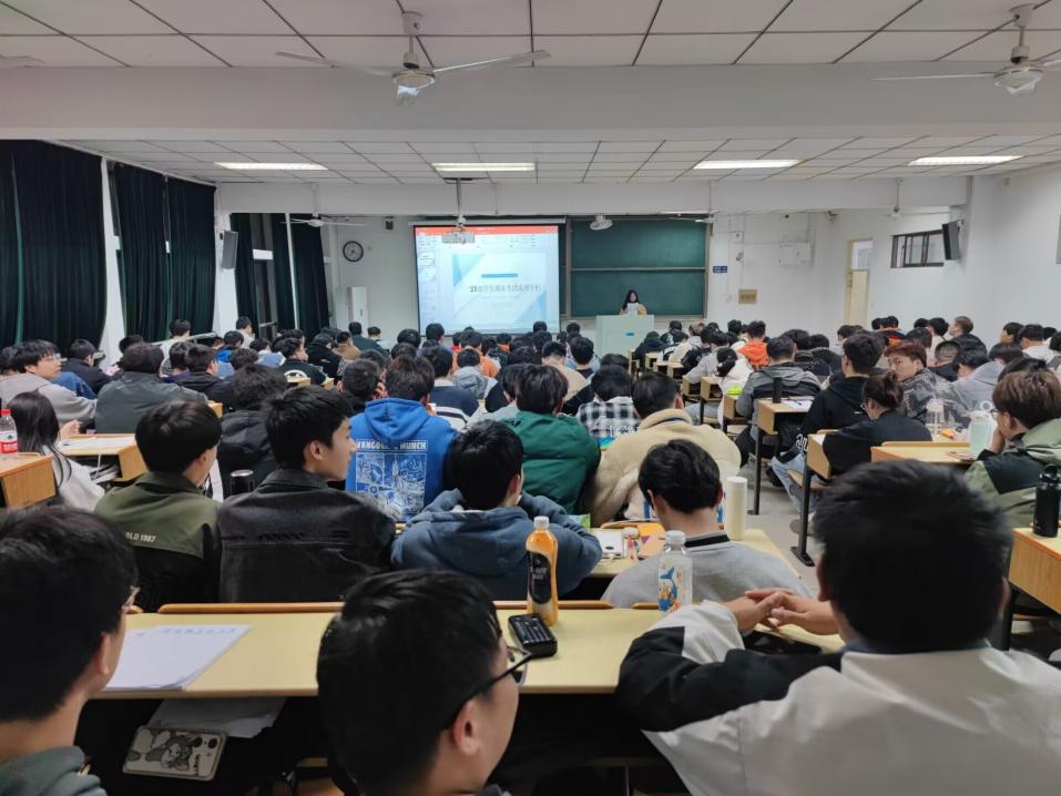 2021级辅导员毕苗在东教一北303开展了以2021级学生考试成绩分析为主题的年级大会,全体2021级学生参会。