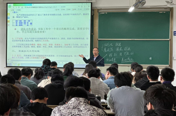 本次示范课程为《机械制造技术基础A》,由我院省级课程思政示范项目课程负责人汪永明老师主讲,讲授章节为零件制造的工艺过程。汪老师以减速器加工为例,引出生产过程、工艺过程和机械加工工艺过程等基本概念。强调实际工作中一个项目的顺利完成,需要多学科团队的分工协作,强调团队合作意识,学会沟通交流很重要。在介绍机械加工工艺过程中的工序、安装、工位、工步和走刀等概念时,汪老师结合不同生产类型,对比讲解其工艺过程的不同,强调工艺是非常灵活的,要统筹考虑各方面因素,从实际出发,因时因地因人和因装备条件来制定零件的工艺规程,巧妙地将课程思政元素融入到课程教学当中。