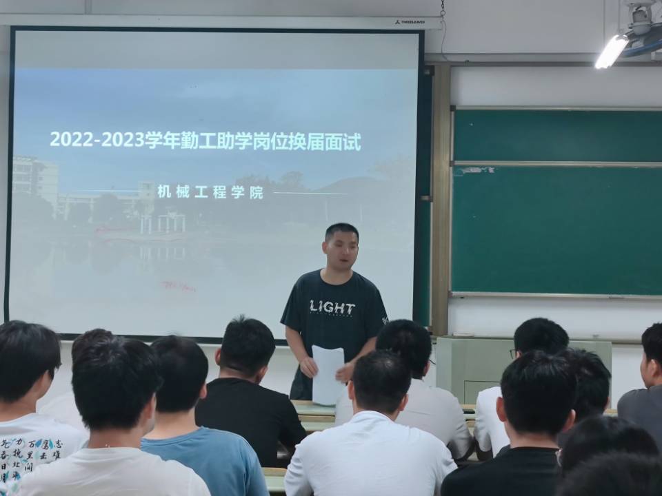在机械楼407教室举行了一年一度的勤工助学岗位换届面试,会议由学院资助联系人、20级专职辅导员汪辉主持,20级和21级全体应聘者参会。