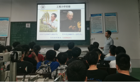 本次示范课为5月28日上午第1节课《工程力学综合实验》,由我院省级课程思政示范项目负责人黄志来老师进行示范,讲授拉伸、压缩和纯弯曲实验,黄老师从学生的认知水平出发,通过实验的置信度、可度量、可操作性、可观测性、误差等讨论实验的本质,引入了丰富的生活实例进行讲解,如:考试其实也是测试,一定存在误差,所以用平时成绩补偿误差,以提高置信度,平时成绩是“科学的结果”。在讲解至难点时,引入科学家自信面对挑战的故事,鼓励同学们勇于直面困难。从“秦始皇统一度量衡”的意义,自然引出力学测试的标准,以及标准分级和官网等。以培养“获取数据、理解任务、应用知识”基础能力为本,引导学生进行“分析问题、综合和评价方案等”高层次思考。如:从铸铁压缩沿45度斜面破坏的感性认识,至强度理论的理性思考,再引导学生观察斜面偏转得如何考虑,以及目前的研究进展等。