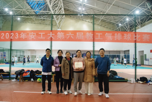 根据校工会通知要求,学院分工会积极组织宣传,选派10位教职工组建了气排球队。各位队员克服了工作繁忙的困难,积极参加训练。在比赛中敢打敢拼,配合默契,发挥出色,最终获得了第三名的好成绩。