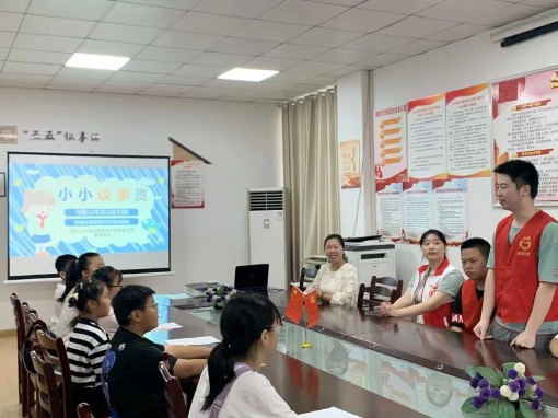 在为期三天的活动中,首先开展了“小小议事员”活动。社工、志愿者们通过生动语言和案例来为儿童讲解什么是全过程人民民主、社区事务的管理范围等,鼓励孩子们发表自己的想法观点,参与社区治理,用“童声童议”让社区更美好,引导孩子们在亲身体验、亲身参与中感悟全过程人民民主。