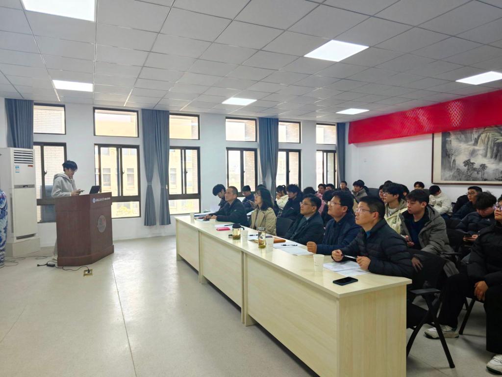 在机械楼404举行大学生创新创业训练计划项目结题验收现场答辩会,答辩邀请学院副院长饶思贤为答辩组组长,学院教师裴善报、叶晔、杨树宝、左立生担任评委,答辩会由陈洁老师主持。