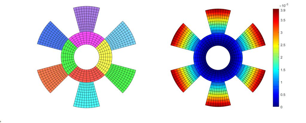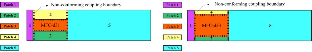 分布式压电智能结构广泛应用于航空航天飞行器壁板的形状控制、减振降噪和健康监测,复杂的服役环境以及材料的多物理场耦合特性给结构的计算带来了严峻的挑战。传统单片等几何分析(IGA)方法控制点的非插值性使其无法精确分析分布式压电智能结构。本研究提出了一种基于Nitsche方法的多片等几何分析方法,将结构划分为多个子域,并采用Nitsche方法耦合相邻子域、确保耦合边界的位移连续性,在减少冗余控制点产生的同时提高了构建、分析复杂几何模型的能力,最终实现了多种复杂分布式压电智能结构的高精度分析。相关研究成果发表在《Thin-Walled Structures》,竞彩足球