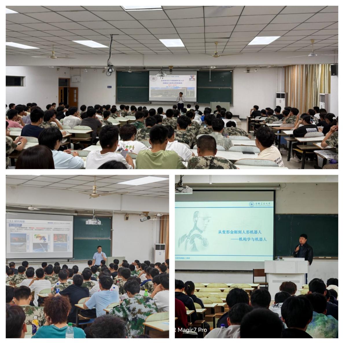 成功开展了迎新“教授、博士论坛”系列活动,历时一个多月,特邀饶思贤、胡晓磊、王涛、袁晖、程健等五位老师分别作了题为“液滴碰撞动力学及调控机制研究”“物质第四态-等离子体加工技术及应用”“多学科交叉下的机械专业人才创新能力培养及典型案例”“给机器‘把脉’:如何保障安全,防止突然‘瘫痪’?”和“从变形金刚到人形机器人——机构学与机器人概述”专题学术报告,全体大一新生聆听了报告。