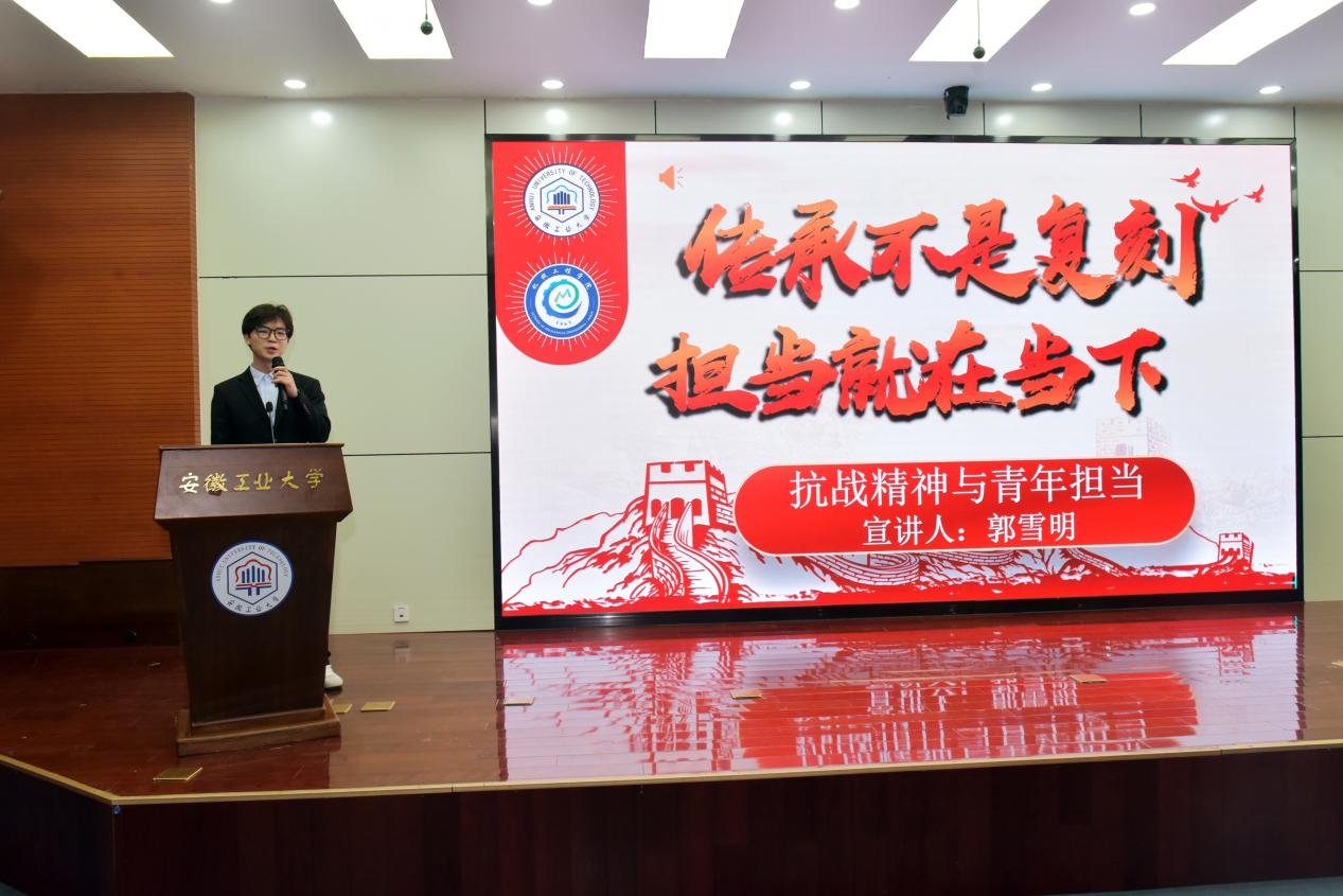 高度重视,迅速启动赛事筹备工作。通过班级群宣传、导师推荐、线下动员等多渠道广泛号召,鼓励研究生将理论学习与实践感悟相结合,积极参与宣讲。决赛现场,郭雪明同学以《传承不是复刻,担当就在当下—抗战精神与青年担当》为题,结合机械工程专业特色,讲述了青年科研工作者在技术攻关、产业升级中的使命坚守,用具体案例诠释理论内涵,逻辑清晰、感染力强;刘慧同学围绕《薪火日记:从兵工传奇到制造未来的担当精神接力》展开宣讲,分享了理论学习对科研方向、人生选择的重要意义,语言朴实生动,情感真挚动人。两位选手凭借扎实的理论功底、鲜明的主题表达和良好的精神风貌,赢得了现场评委与观众的一致好评,最终分别斩获二等奖、三等奖。