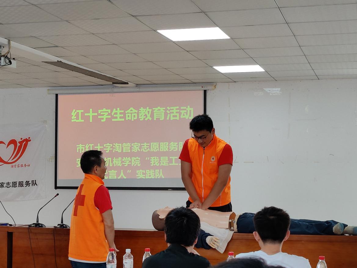 培训会上,培训老师强调了学习应急救护知识的重要性,介绍了心肺复苏的两个部分:胸外心脏按压、人工呼吸。在心肺复苏的现场实练环节,培训老师以模拟橡胶人为器具,现场演示正确的心肺按压和人工呼吸方式,指导实践队员分拆救护具体步骤,解说常见错误手法。此次应急救护培训使得广大市民与实践队员都学到了非常实用的急救知识,“我是工大代言人”暑期实践队期望这项急救技能能在未来挽救更多的生命。(撰稿:费白露 审核:李克明)