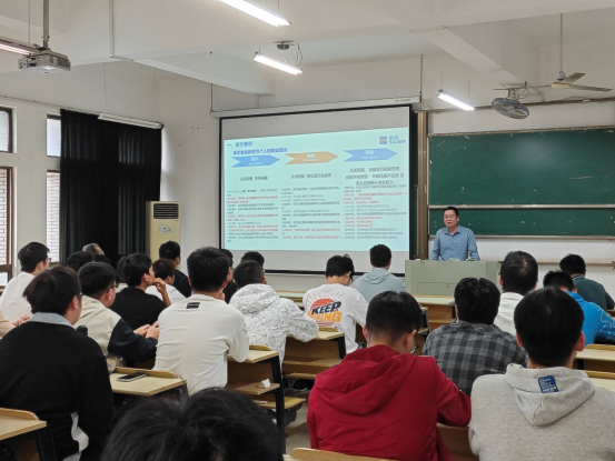 讲座开始,葛燕飞对泰尔重工股份有限公司的公司情况、竞彩足球、发展历程,以及个人职业发展路线做了详细介绍。随后,立足于工作20年的机械毕业生视角,从“就业与择业”、“职业与事业”两组对比,给同学们解读大学生职业生涯规划,畅谈企业人才战略,勉励机械学子选择基于努力,思路决定出路,观念改变命运,梦想照亮人生,要做心中有理想、肩上有担当、脚下有力量的新时代青年。