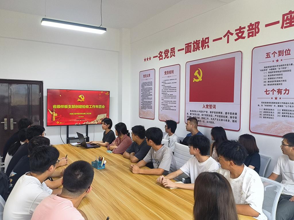 本科生第三党支部组织召开省级样板支部创建验收工作布置会,全面总结两年来的建设成果,安排部署验收准备工作。支部书记陈洁主持会议,全体支部党员参会。