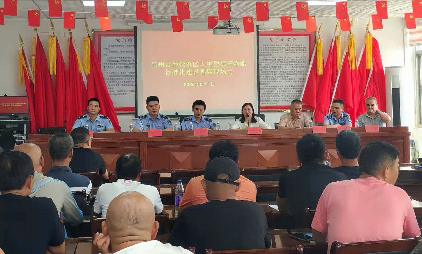 8月1日,泉州台商投资区组织召开大中型渔船标准化建设观摩现场会。泉州市海洋与渔业执法支队两名资深验船师应邀进行专题授课与指导。