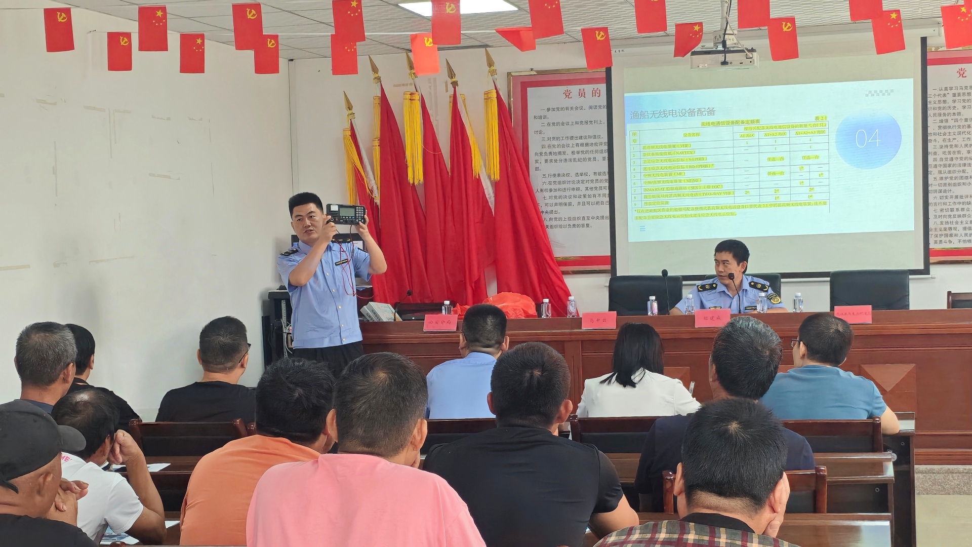 会上,验船师紧扣渔船标准化提升核心要求,系统、专业地讲解了渔船船检证书有效期管理、安全设备配备标准、救生设备配置规范、无线电通信设备要求及航行设备配备要点等五个方面内容。为增强教学效果,授课创新采用实物教学方式,将常用无线电通信设备和航行设备搬上讲台,直观讲解其功能、操作规范及维护注意事项,帮助参训人员精准掌握设备应用要点。